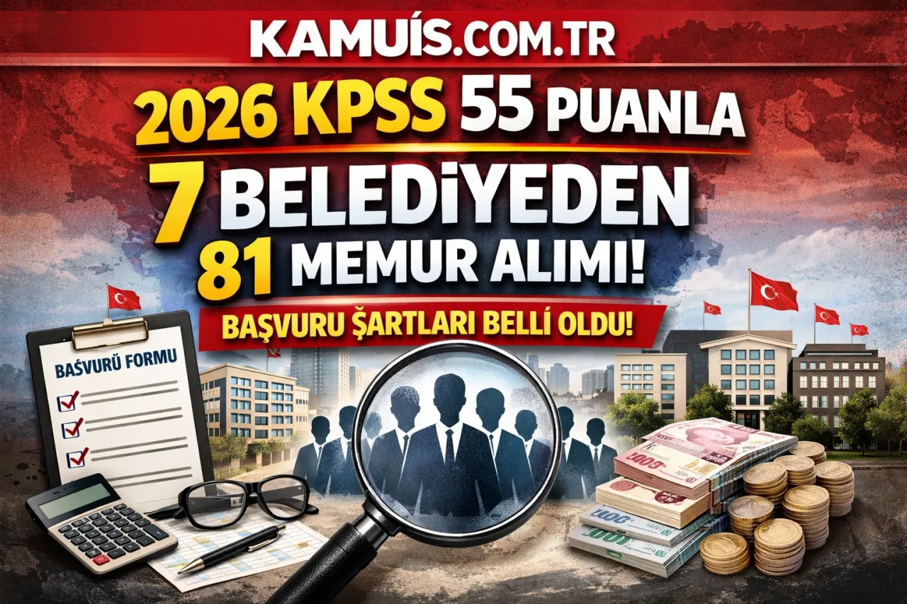 KPSS 55 Puanla 7 Belediyeden 81 Memur Alımı: Başvuru Takvimi ve Detaylar Açıklandı 9 Nisan 2026 tarihinde belediyelerden peş peşe gelen ilanlarla kamuya personel alım süreci hız kazandı. Türkiye genelinde yedi farklı belediye, toplam 81 memur alımı yapacağını duyurdu. Alımlar; zabıta memuru, itfaiye eri, mühendis, psikolog ve farklı branşlarda memur kadrolarını kapsıyor. Başvurularda 2024 KPSS (B) grubu puanı esas alınacak olup, taban puanlar 55 ile 70 arasında değişiyor.