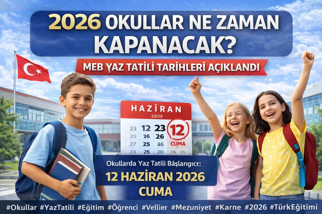 Okulların 12 Haziran 2026 Cuma günü kapanması ve öğrencilerin yaz tatiline başlaması bekleniyor.