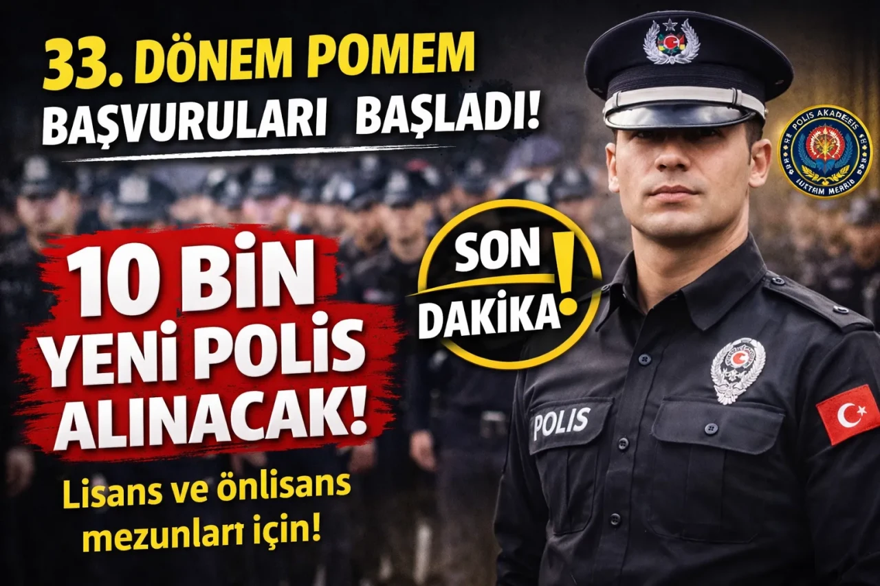 33. Dönem POMEM Başvuruları Başladı! 10 Bin Polis Alımı Yapılacak 33. Dönem POMEM ilanı yayımlandı. Polis Akademisi Başkanlığı tarafından yapılan duyuruya göre, Polis Meslek Eğitim Merkezlerine (POMEM) toplam 10 bin öğrenci alımı gerçekleştirilecek. Lisans ve ön lisans mezunlarını kapsayan alım için başvuru süreci resmen başladı.