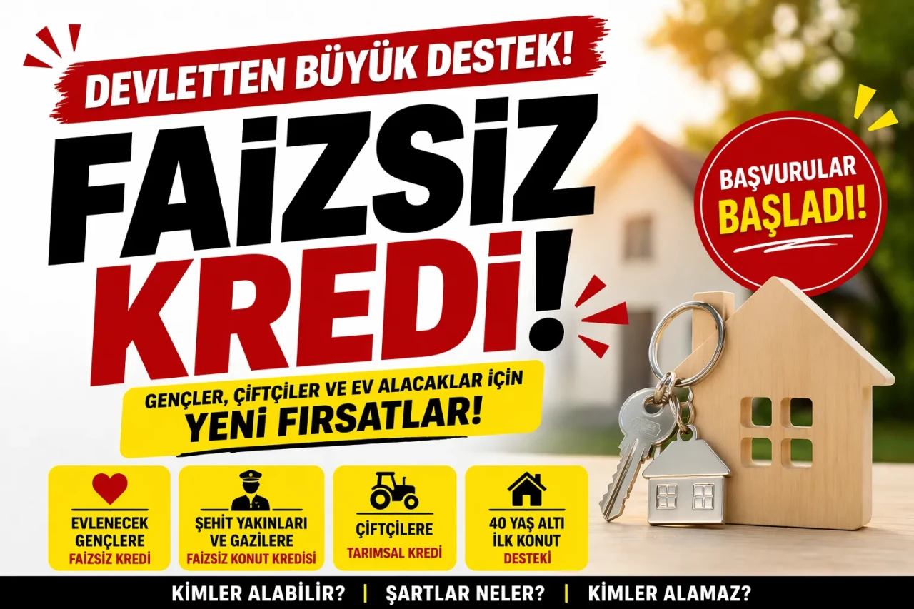 Devletten Faizsiz Kredi Desteği 2026 Kimler Alabilir, Şartlar Neler, Kimler Yararlanamaz? 2026 yılı itibarıyla devlet, farklı kesimlere yönelik sunduğu faizsiz ve düşük faizli kredi desteklerini genişletmeye devam ediyor. Gençlerden çiftçilere, şehit yakınlarından ilk evini alacak vatandaşlara kadar birçok kişi bu desteklerden faydalanabiliyor.