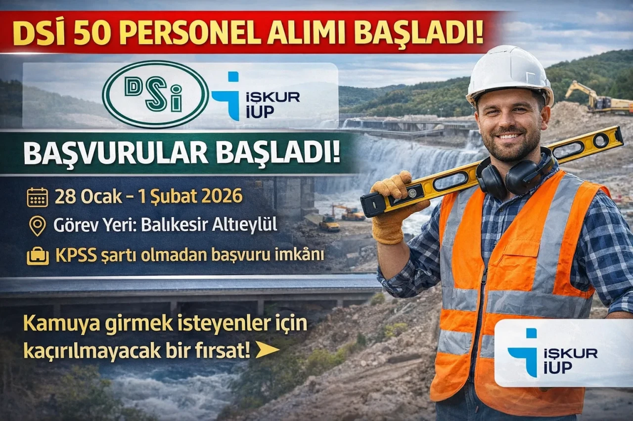 Devlet Su İşleri (DSİ), Balıkesir Altıeylül’de 50 personel alımı yapacağını duyurdu. Alımlar, İŞKUR İUP programı kapsamında gerçekleştirilecek.