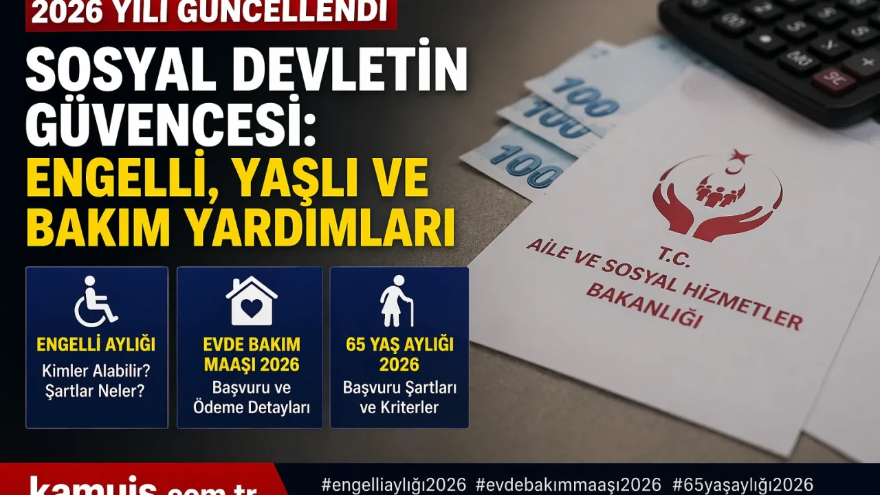 2026 Sosyal Yardımlar Güncellendi! Engelli, Yaşlı ve Evde Bakım Destekleri Detaylarıyla AçıklandıTürkiye’de sosyal devlet anlayışı kapsamında sunulan nakdi yardımlar, 2026 yılı itibarıyla yeniden güncellenerek milyonlarca vatandaşı ilgilendiren önemli değişiklikler içeriyor. Özellikle engelli aylığı, evde bakım yardımı ve 65 yaş aylığı gibi destekler, dezavantajlı grupların yaşam kalitesini artırmayı hedefliyor. İşte 2026 yılı sosyal yardım kalemleri ve detayları…