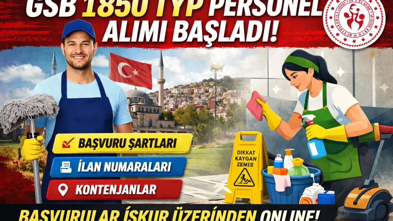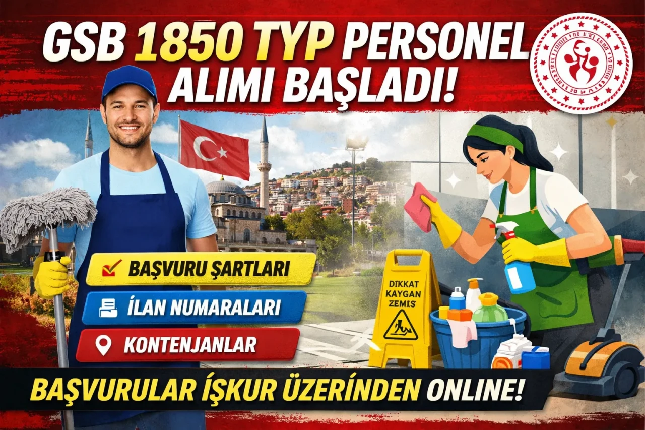 Gençlik ve Spor Bakanlığı (GSB), 2026 yılı kapsamında önemli bir personel alımı duyurusu yaptı. Yapılan açıklamaya göre, Toplum Yararına Program (TYP) kapsamında toplam 1850 temizlik görevlisi alımı gerçekleştirilecek.