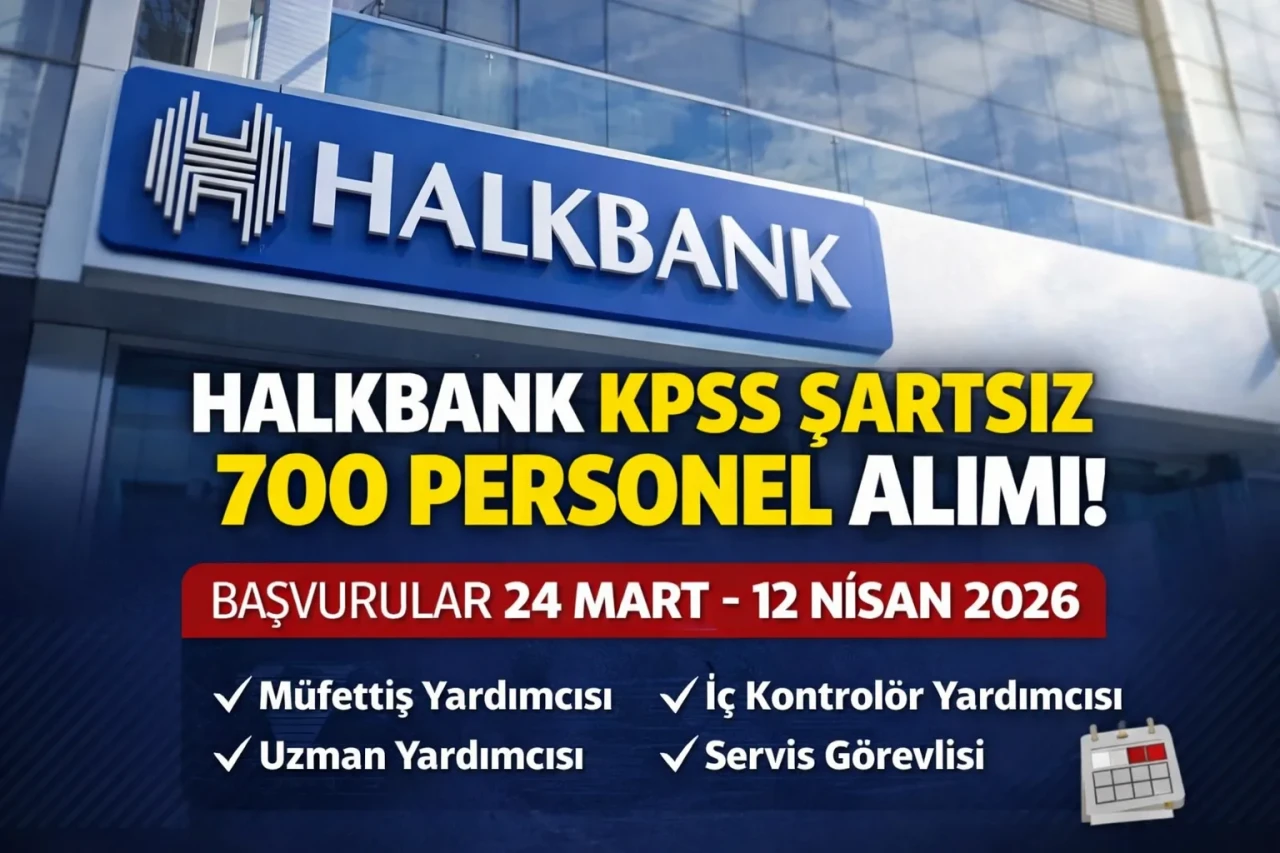 Halkbank 700 Personel Alımı 2026 KPSS Şartsız Başvuru Başladı! Tarihler, Şartlar ve Kadro Dağılımı Bankacılık sektöründe kariyer hedefleyen adaylar için önemli bir fırsat duyuruldu. Halkbank tarafından yayımlanan ilana göre, KPSS şartı aranmadan 700 personel alımı yapılacak. Başvuru süreci başlamış olup adaylar için kritik tarihler ve şartlar netleşti.