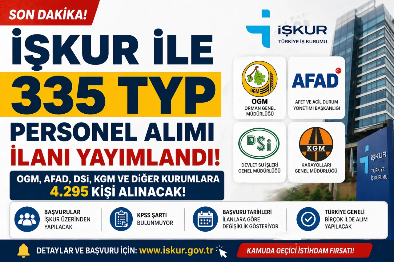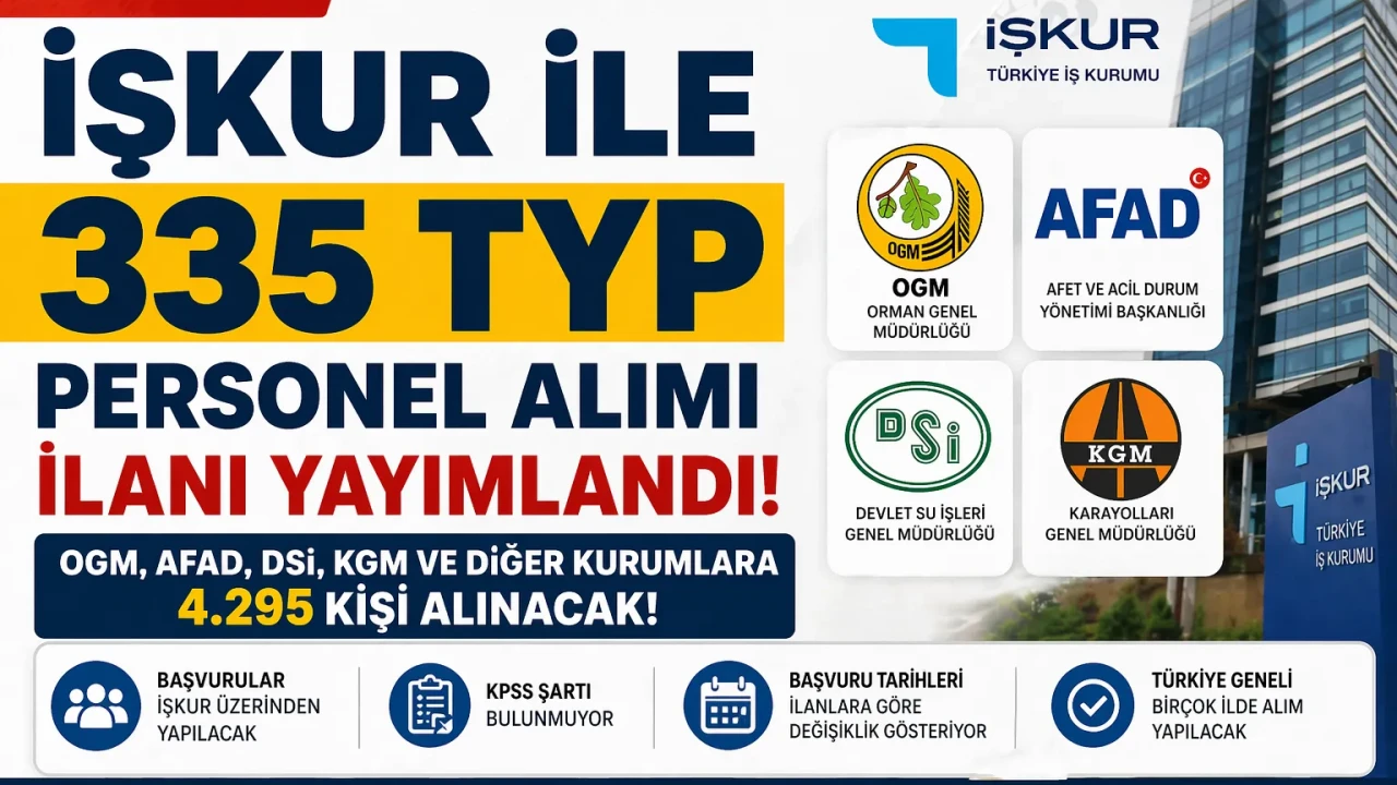İŞKUR TYP PERSONEL ALIMI 2026 OGM, AFAD, DSİ VE KGM İÇİN 4.295 KİŞİLİK ALIM BAŞLADI