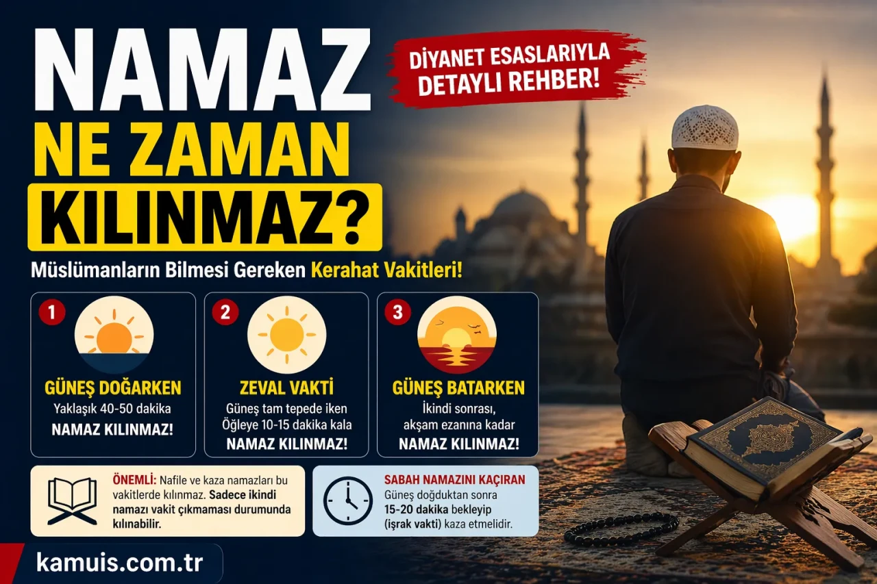 Namaz Ne Zaman Kılınmaz? Namazın tamamen yasaklandığı değil ama kılınmasının mekruh (uygun olmayan) sayıldığı bazı özel vakitler vardır. Bu vakitlere kerahat vakitleri denir.