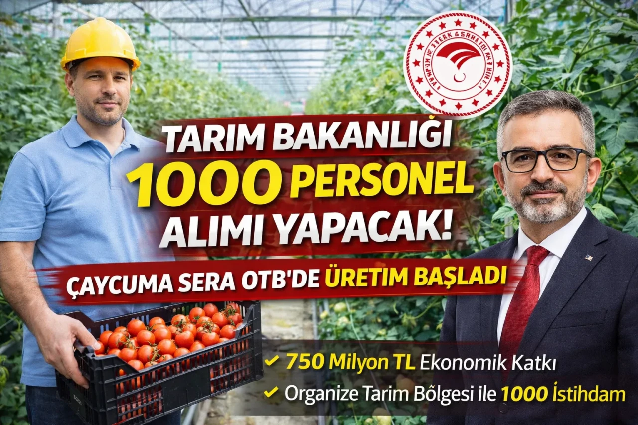 Tarım ve Orman Bakanlığı 1000 Personel Alımı Yapacak! Çaycuma Sera OTB’de Üretim Başladı Tarım sektöründe büyük bir istihdam fırsatı doğuyor. Tarım ve Orman Bakanlığı destekli olarak hayata geçirilen Çaycuma Sera Organize Tarım Bölgesi (OTB) projesinde üretim resmen başladı. Projenin tamamlanmasıyla birlikte 1000 kişiye doğrudan iş imkânı sağlanması hedefleniyor.