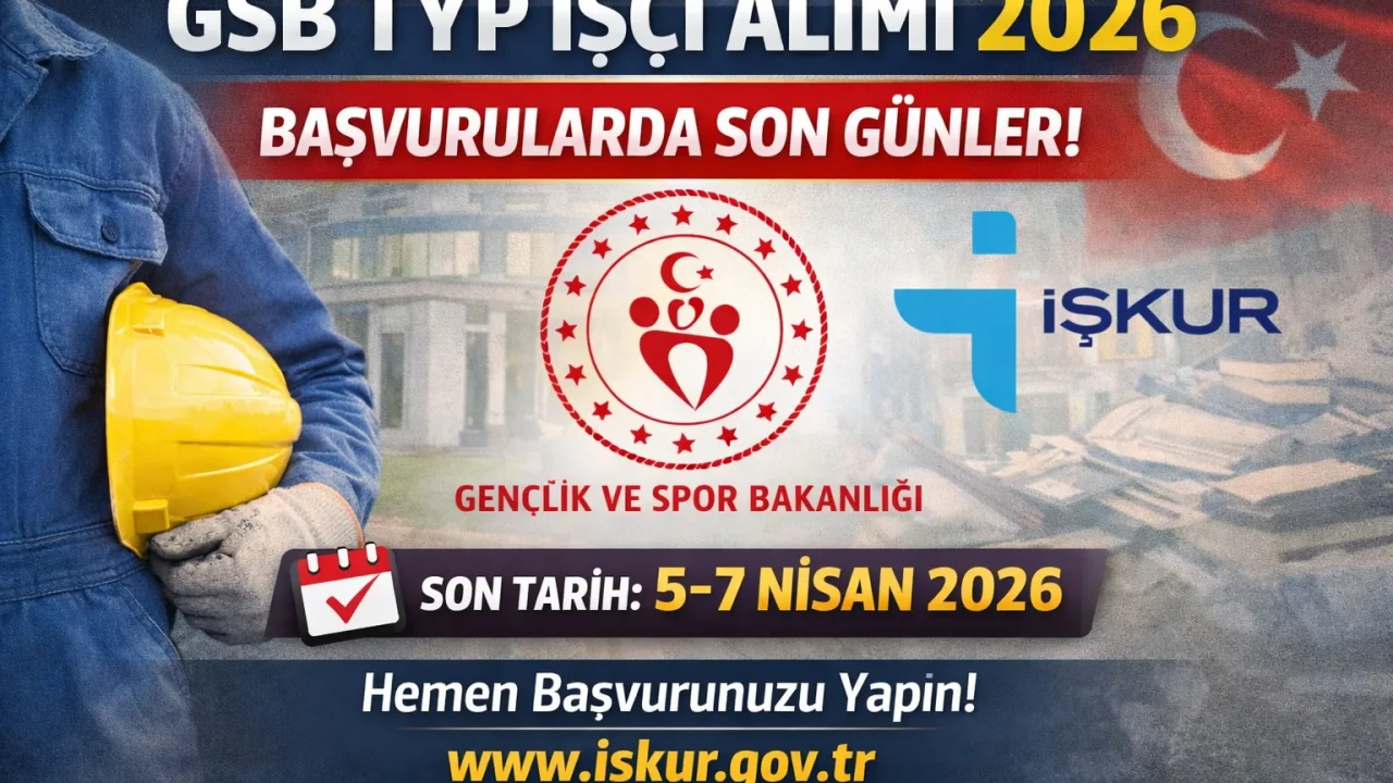 GSB TYP İşçi Alımı 2026 Sona Eriyor! Başvurular İçin Son Günler Gençlik ve Spor Bakanlığı (GSB) bünyesinde, İŞKUR üzerinden yürütülen Toplum Yararına Program (TYP) kapsamında yapılan işçi alımlarında süreç tamamlanmak üzere. 9 ilde açılan toplam 880 kişilik kontenjan için başvuruların sonuna gelinirken, adaylar için kritik günler başladı.