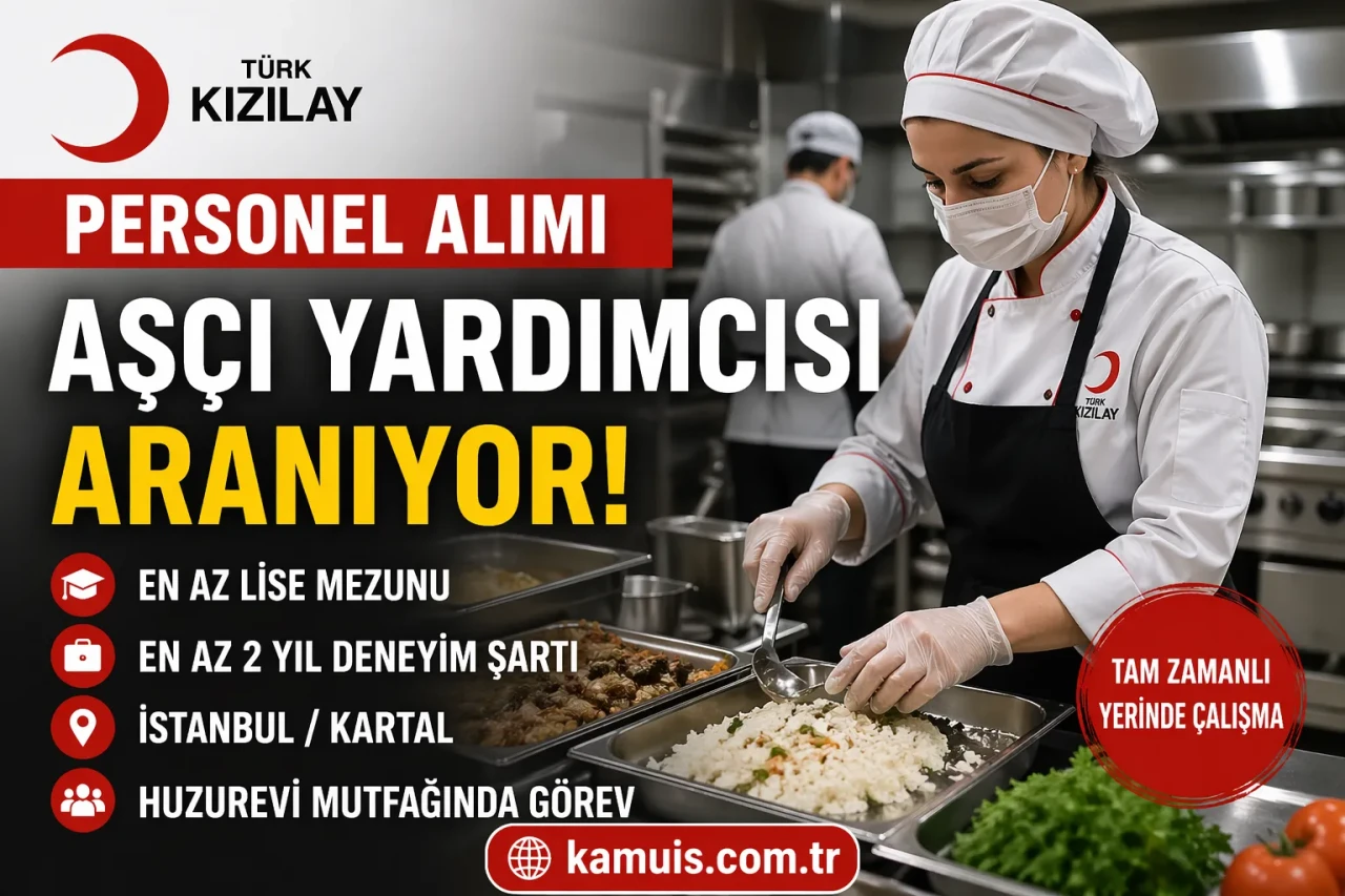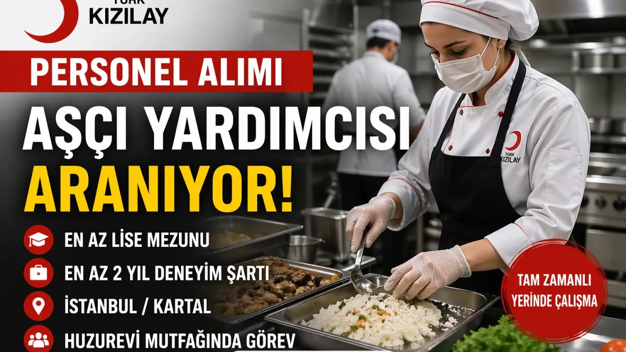 Kızılay 2026 Aşçı Yardımcısı Alımı İlanı En Az Lise Mezunu, Deneyimli Personel Aranıyor Türk Kızılay bünyesinde faaliyet gösteren Kızılay Bakım A.Ş., 2026 yılı personel alımları kapsamında yeni bir ilan yayımladı. İstanbul Kartal’da bulunan huzurevinde görevlendirilmek üzere aşçı yardımcısı alımı yapılacağı açıklandı. En az lise mezunu adayların başvurabileceği ilanda, özellikle mutfak deneyimi ve hijyen bilgisi ön plana çıkıyor.
