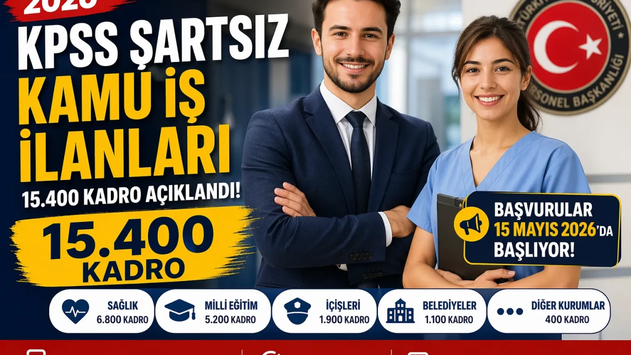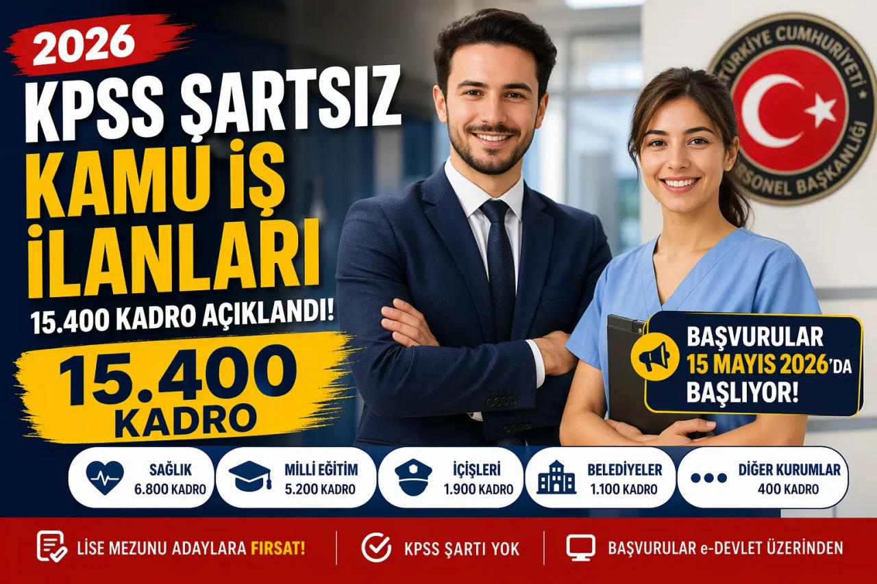 2026 yılı KPSS şartsız kamu personel alımları, geniş kadro sayısı ve farklı pozisyon seçenekleriyle dikkat çekiyor. Özellikle hızlı başvuru ve doğru tercih yapan adaylar için önemli bir kariyer fırsatı sunuyor.